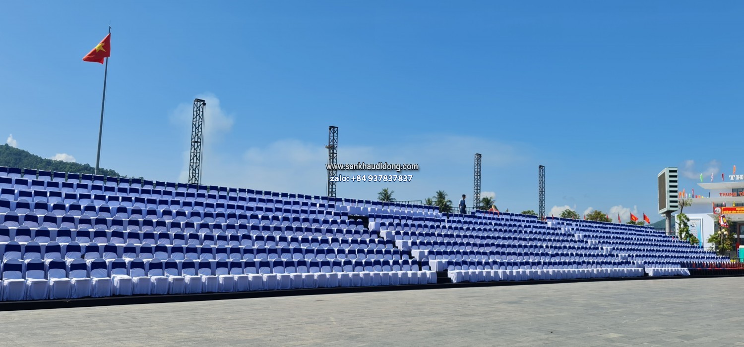 Cho thuê khán đài di động tổ chức sự kiệnDịch vụ cho thuê khán đài tổ chức sự kiện là một dịch vụ cung cấp sân khấu khán đài lắp ghép di động cho các tổ chức sự kiện, như concert, buổi biểu diễn âm nhạc, sự kiện thể thao, hội chợ, hoặc bất kỳ sự kiện công cộng hoặc riêng tư nào khác. Dịch vụ này tập trung vào việc cung cấp một nền tảng chuyên nghiệp và tiện nghi để khán giả có thể có trải nghiệm tốt nhất trong suốt quá trình tham gia sự kiện.BGS 001Khán đài di độngSố lượng: 10000 M2