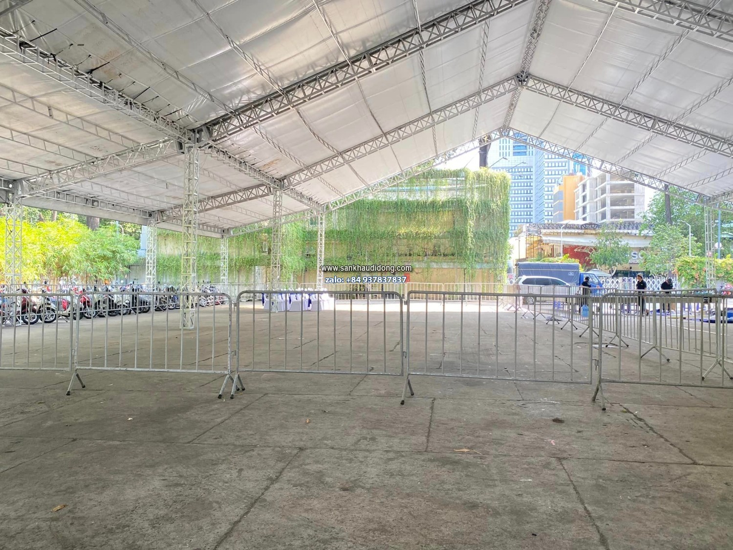 Chất lượng sản phẩm: Hàng rào an ninh do Công ty 4HMEDIA sản xuất được làm từ sắt chắc chắn, kích thước ngang 2m x cao 1.2m dễ dàng tháo ráp và vận chuyển.