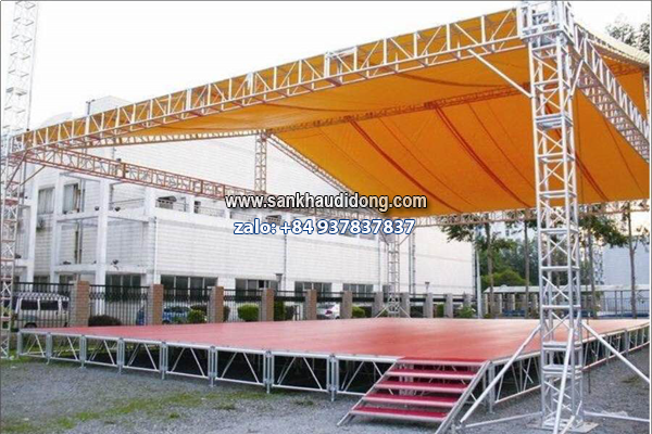 Cung cấp bục sân khấu di động bằng hợp kim nhôm cao cấp được sử dụng trong nhà hoặc ngoài trời, trong mưa, tại các bãi biển, trên đóc đồi dốc hoặc bấc cứ địa hình địa vật nào. Với kích thước module tiêu chuẩn 1m x 2m, chiếu cao có thể tự điều chỉnh kích thước từ : 0.5 m - 1.5m. Sàn sân khấu được sử dụng ván ép phủ flim chống nước đạt tiêu chuẩn quốc tế, rất nhẹ, bền và phù hợp cho các chương trình sự kiện lớn.